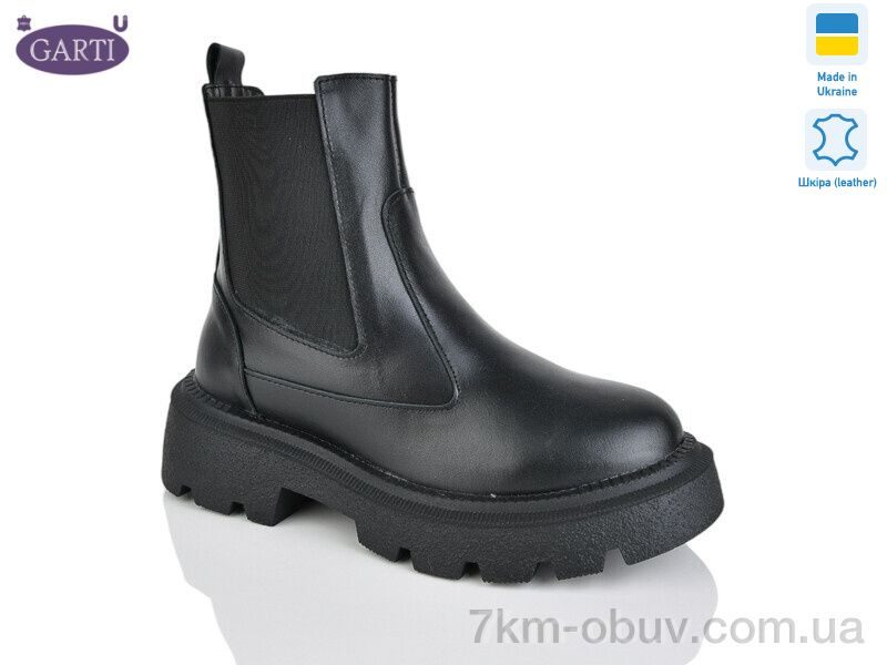 Ботинки Garti 367 чорна шкіра хутро